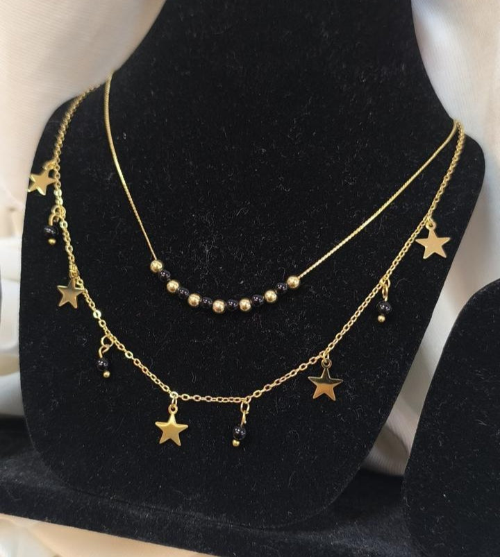 Starry inspired celestial night layers necklace made with anti-tarnish alloy and adjustable length.