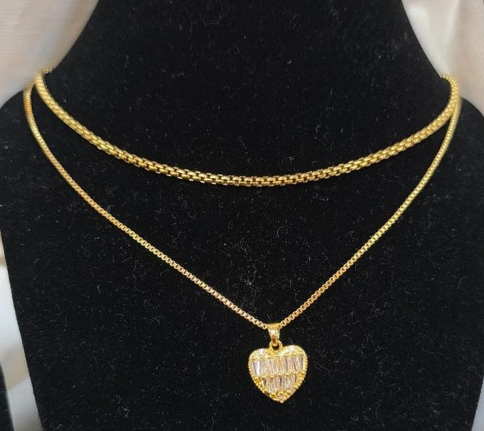 Sparkling crystalline heart duo necklace crafted with anti-tarnish alloy and adjustable length for a perfect fit.