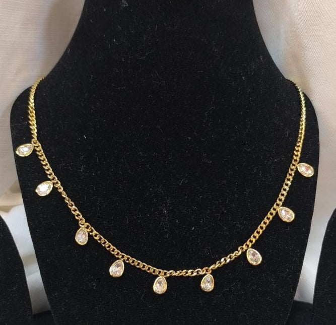 Shimmering glistening drops necklace made with anti-tarnish alloy and adjustable length.