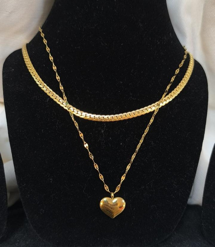 Zainif Golden Heartbeat Duo Necklace