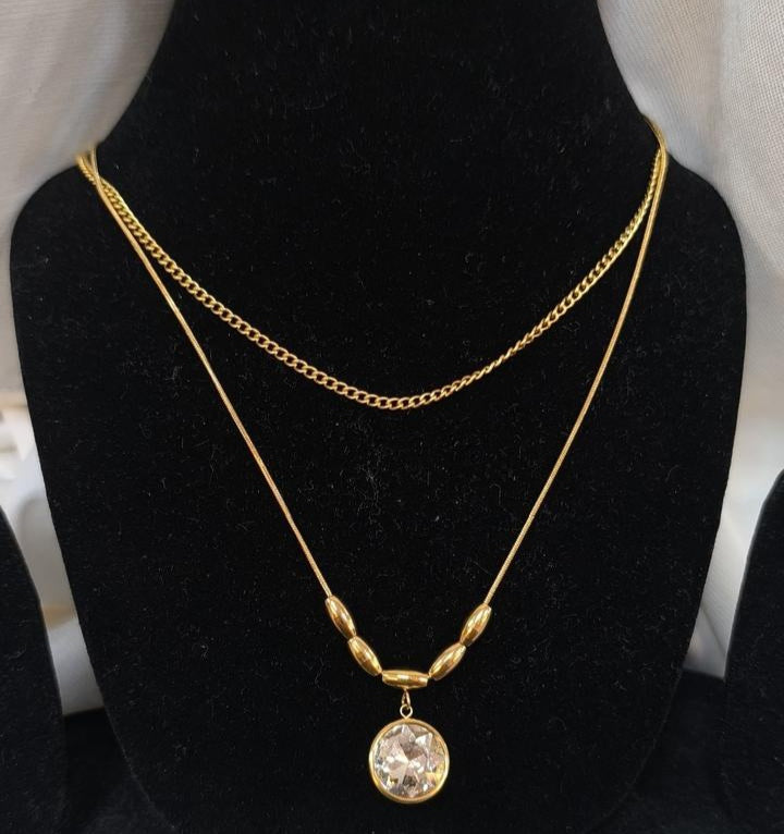 Radiant luminous orb duo necklace crafted with anti-tarnish alloy, adjustable length for style and comfort.