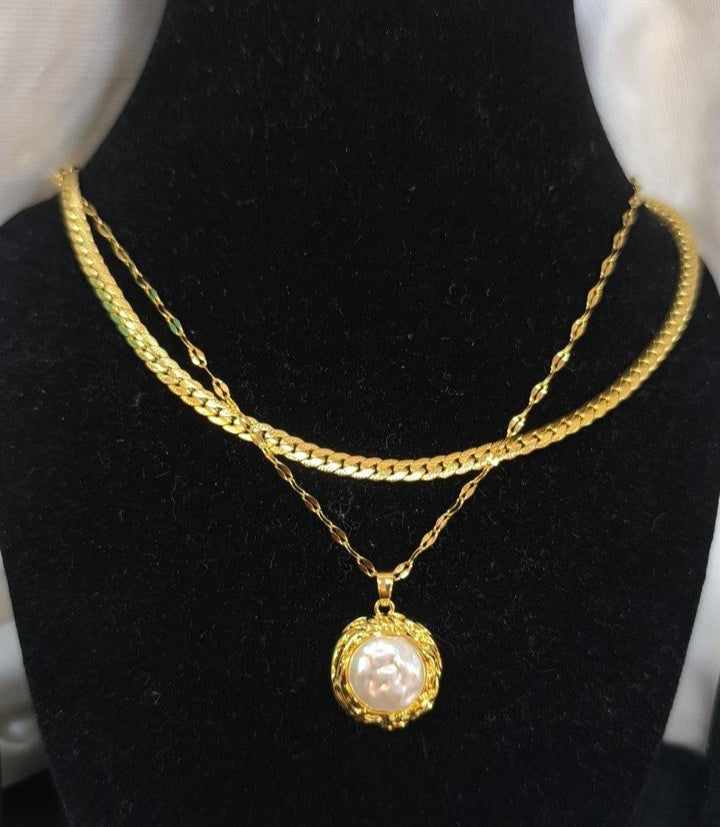 Luxurious opulent pearl duo necklace made with anti-tarnish alloy, adjustable length for comfort and style.