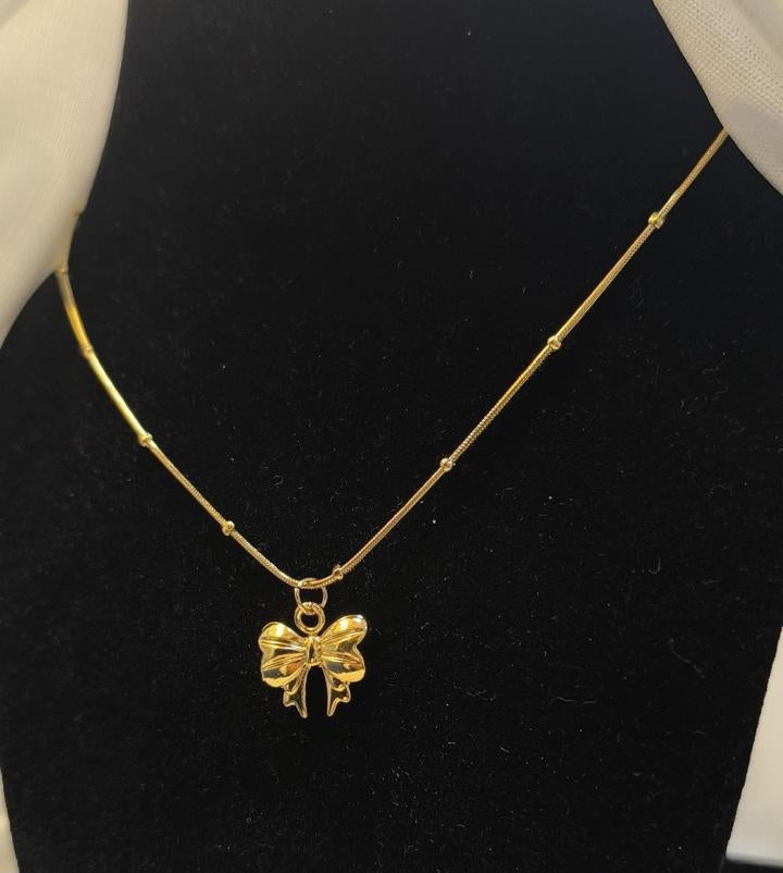 Charming playful bow necklace made with anti-tarnish alloy and adjustable length.